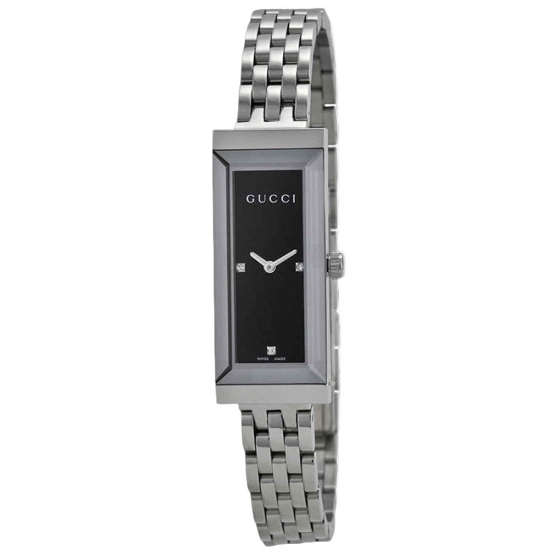 Stainless steel case with a stainless steel bracelet. Fixed G-shaped stainless steel bezel. Black dial...